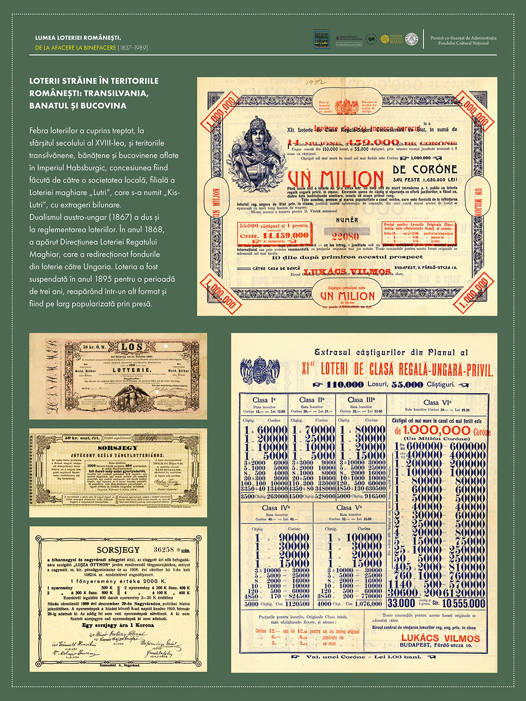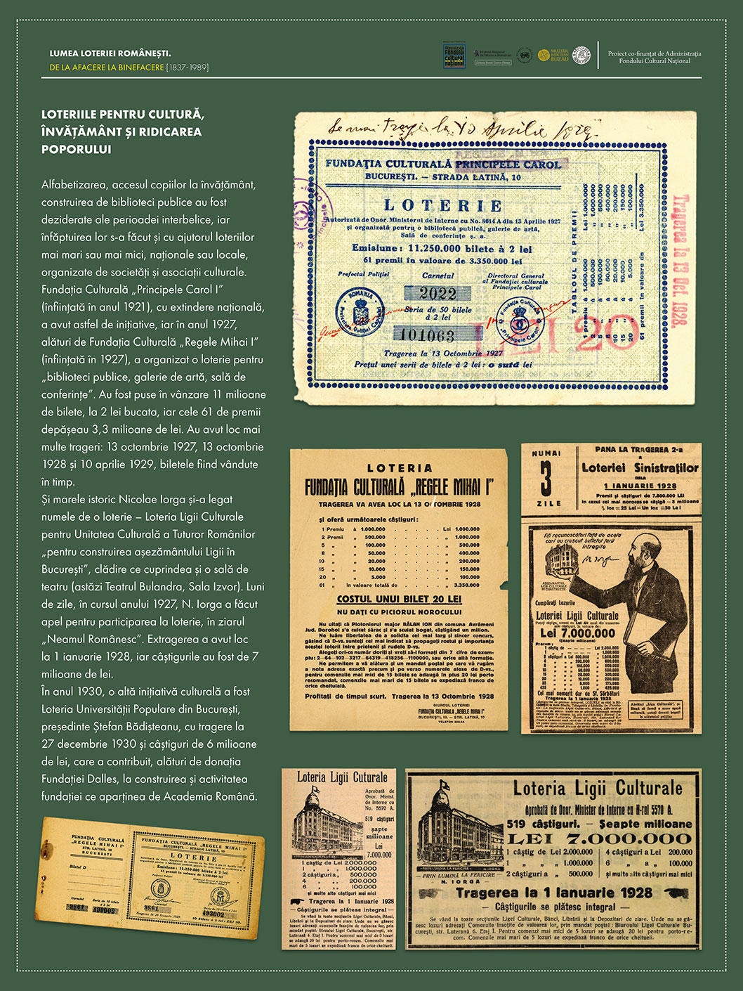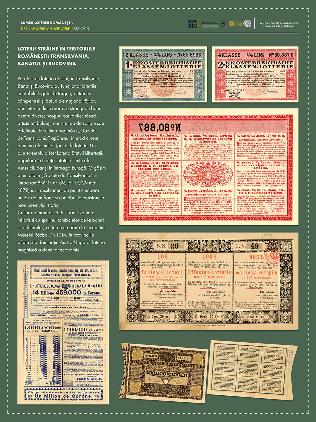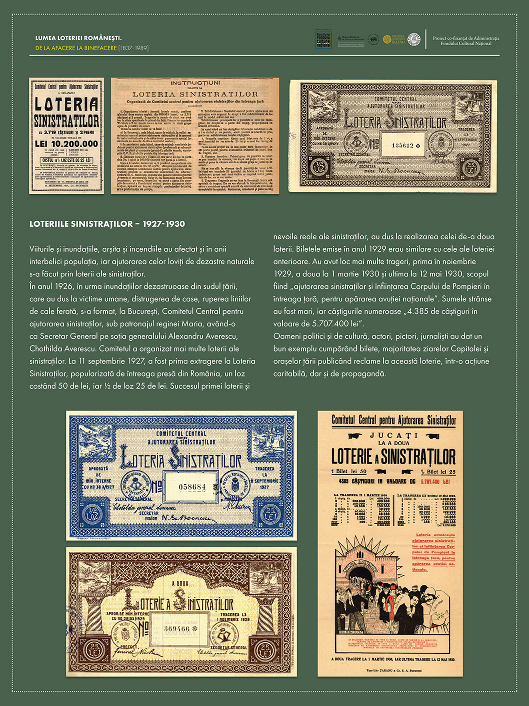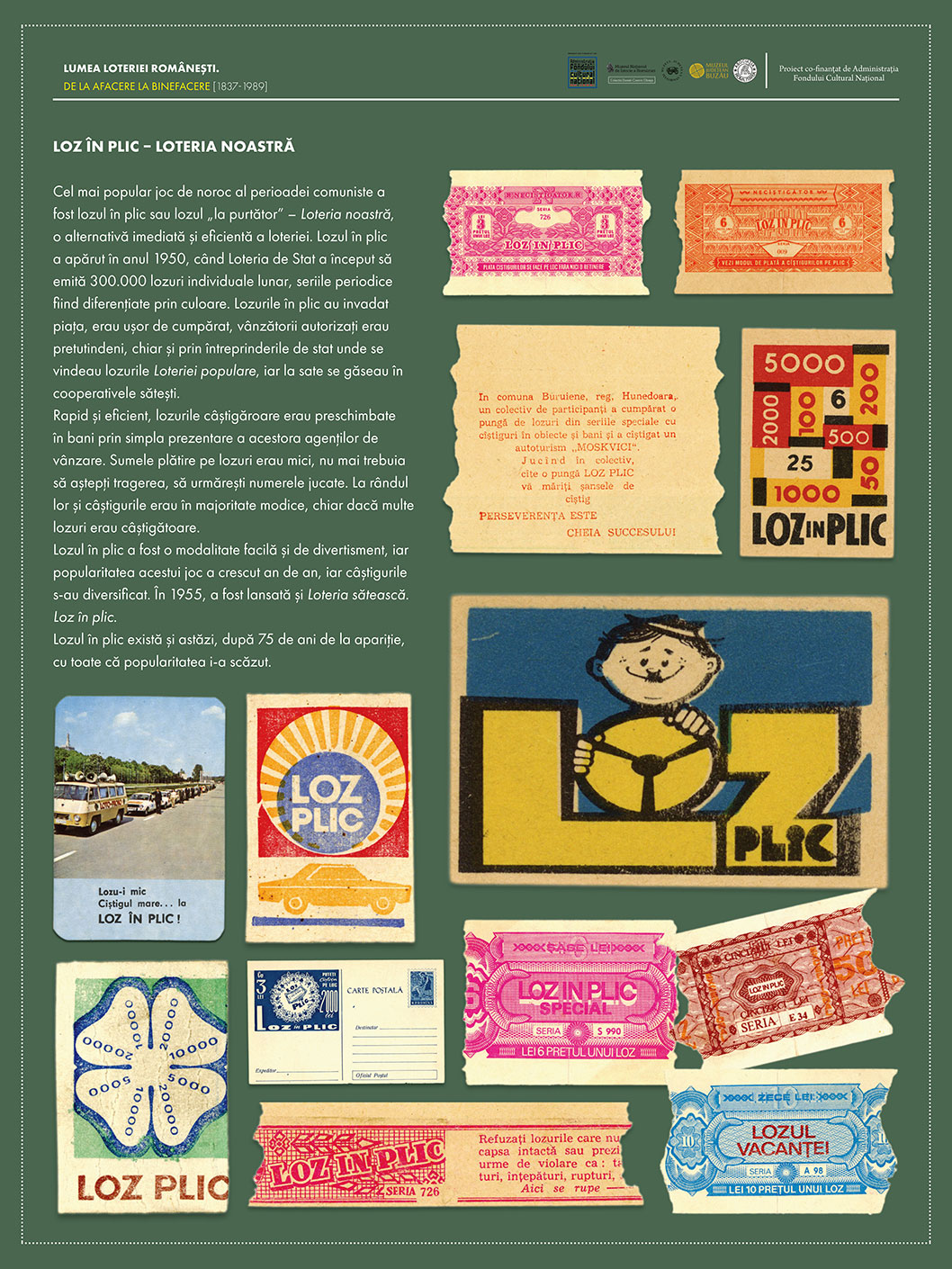 Proiectul „Lumea loteriei românești: de la afacere la binefacere (1837-1989)”, cofinanțat de către Administrația Fondului Cultural Național (AFCN), Proiecte Culturale, sesiunea II/2025, Patrimoniu Cultural Material, cu suma de 160.622 lei, își propune diversificarea audienței muzeelor și cultivarea interesului și respectului pentru patrimoniul național prin apelul la tandemul colecții particulare – muzee.