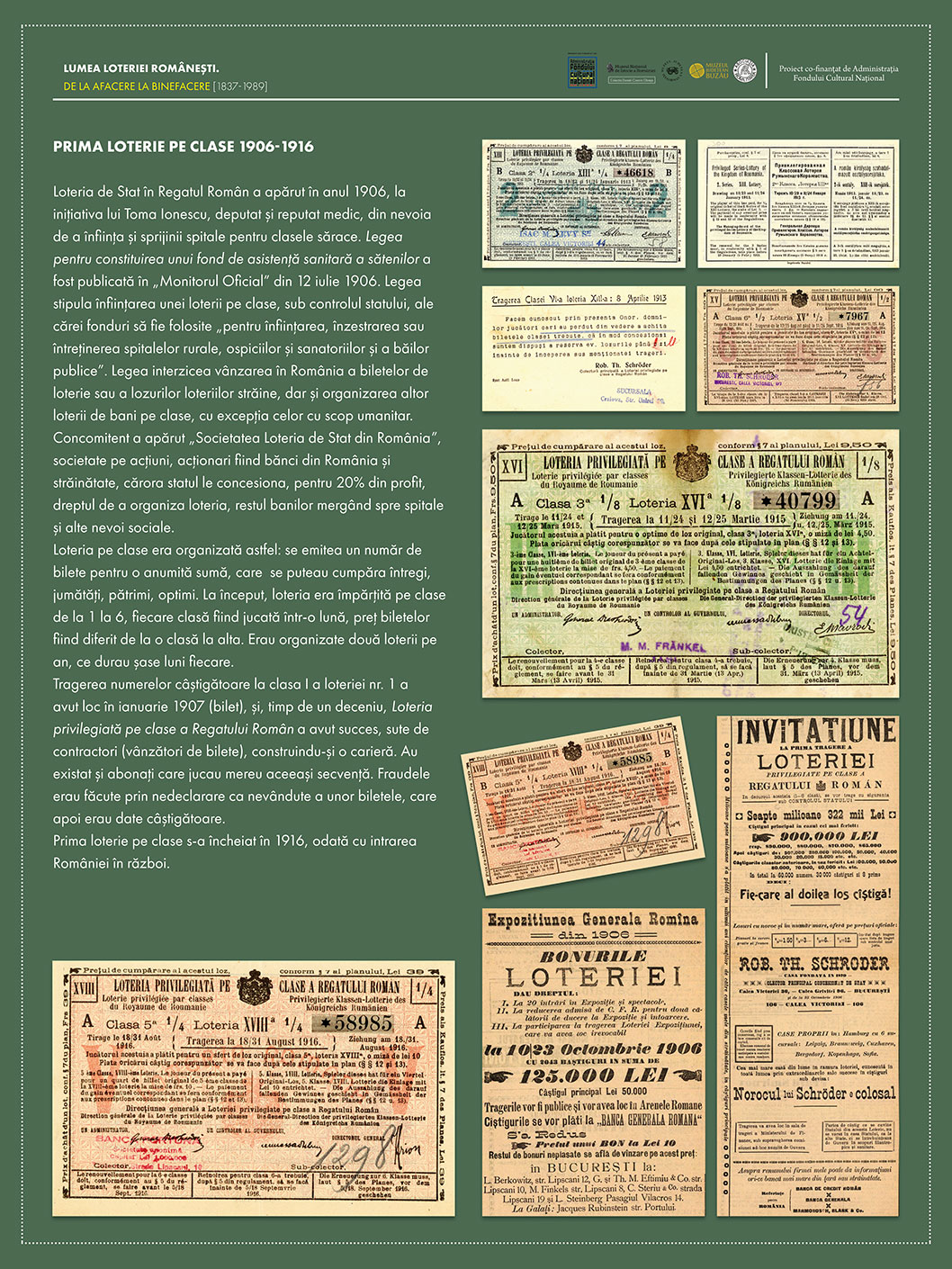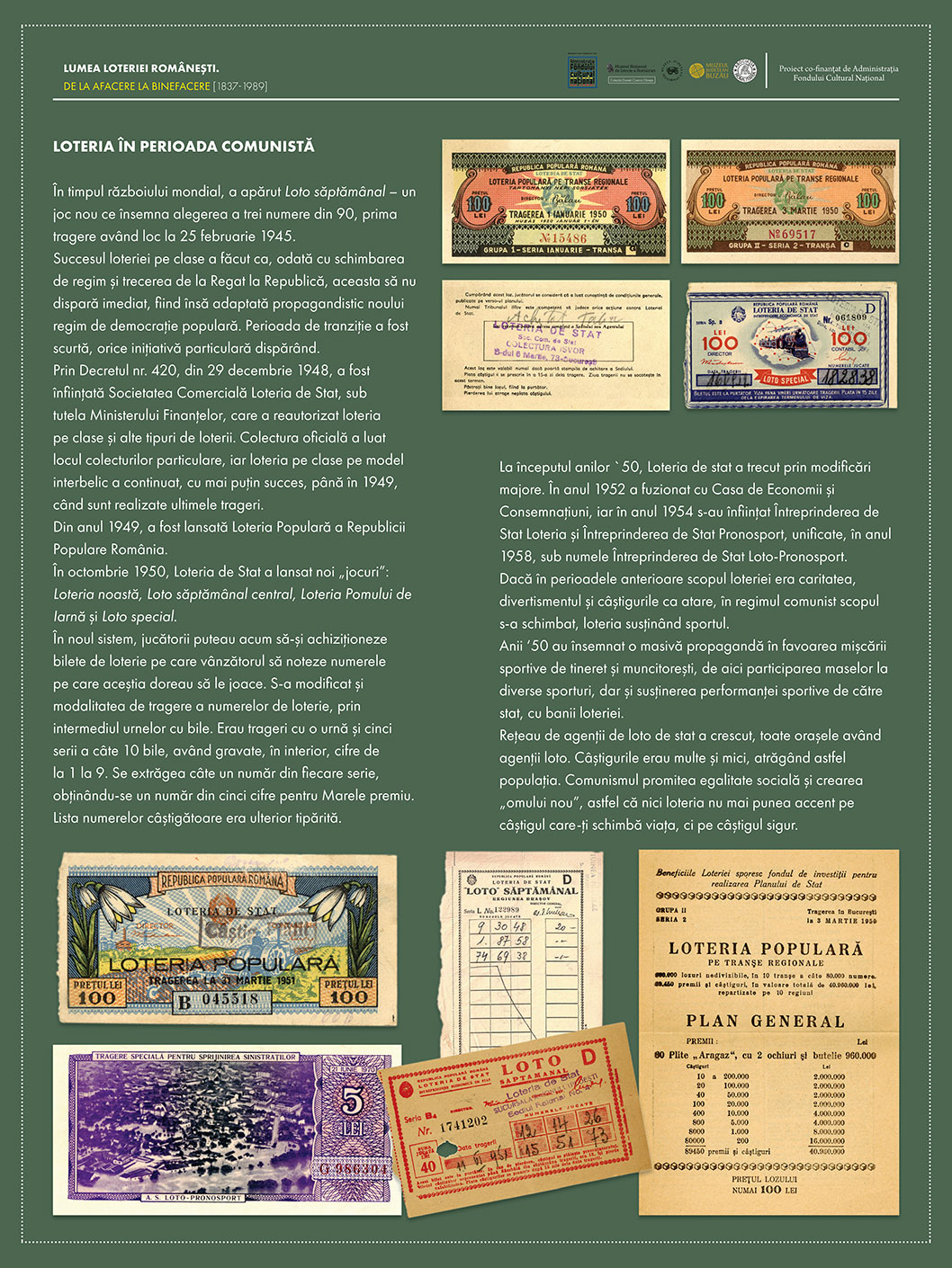 ► Realizarea a 20 de panouri (120 x 90 cm), care să ilustreze istoricul loteriei loteriei, ca bază